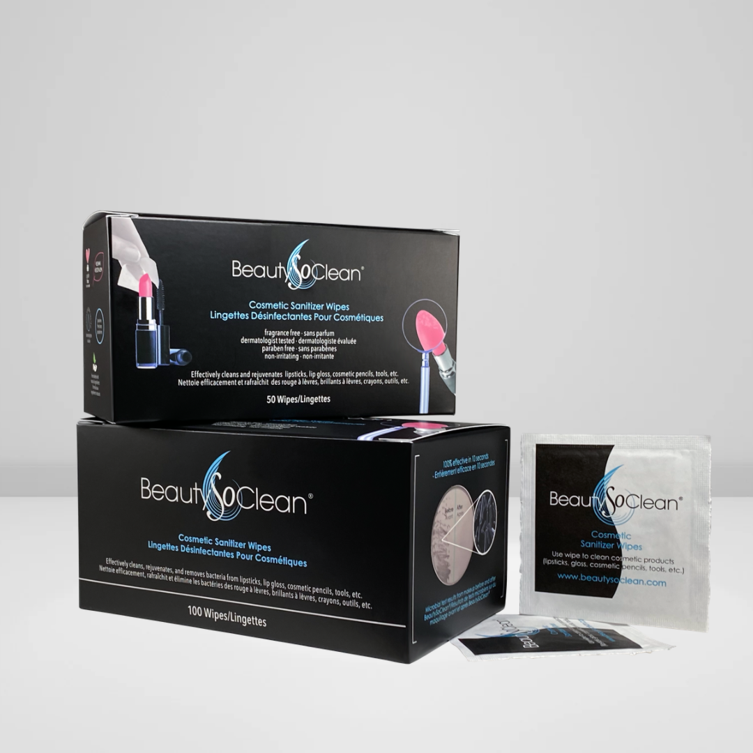 The individually wrapped, non-woven, BeautySoClean® Cosmetic Sanitizer Wipes are effective on makeup that accumulates visible debris such as dust, lint and food particles. They clean, and refresh makeup without altering the products formula. The wipes do not dry out, crack or alter the colour of the makeup.