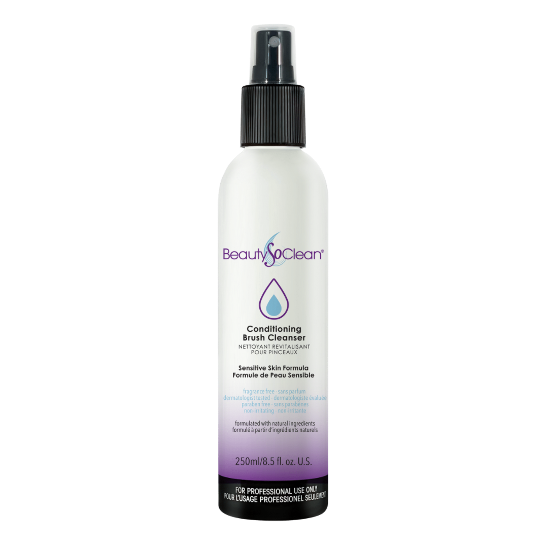 BeautySoClean® Conditioning Brush Cleanser is an efficient, yet gentle makeup brush cleanser, specifically formulated for sensitive skin. This no-rinse, quick drying formula removes cosmetic residue from your brushes, leaving them fresh, clean and soft. It does not leave residue on your brushes, makeup product or on your client’s face.